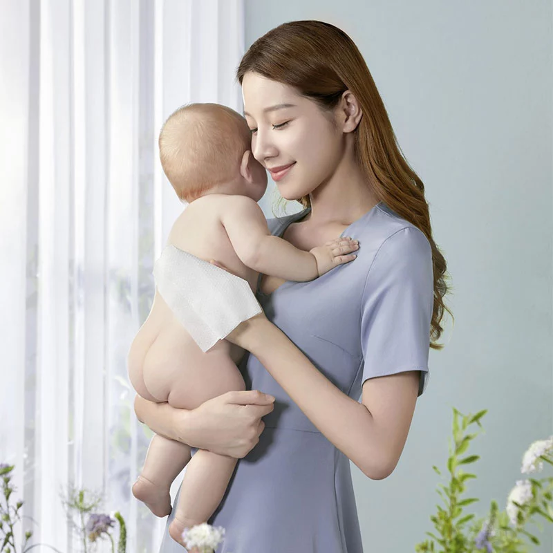 Ново надградениотВода марамчиња за бебесе изработени од поквалитетен природен памучен материјал, кој е помек и повеќе нежен на допирот и се грижи за деликатната кожа на бебето како рацете на мајката. После посебен процес, влакната е повеќе деликатно и меко, а допирот е нежен како облак, донесувајќи невидена удобност на бебето.