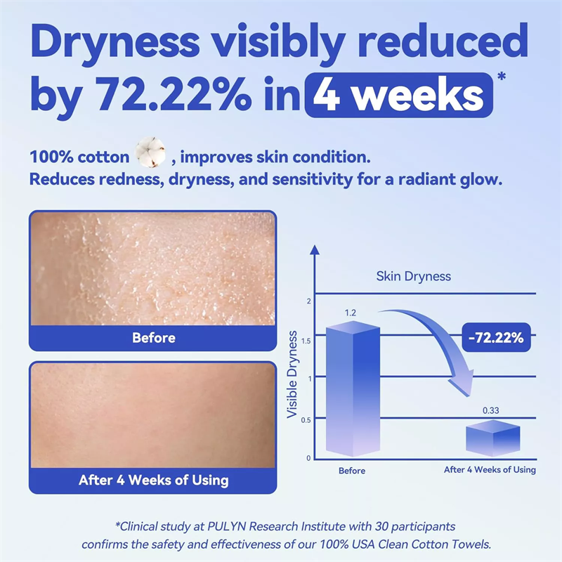 Повторно употребливи крпи за лице честопати имаат бактерии, што доведува до запушени пори или иритација на кожата. За еднократна употреба или брзо суво памучно крпи за лице нудат побезбедно, почисто искуство за нега на кожата.
