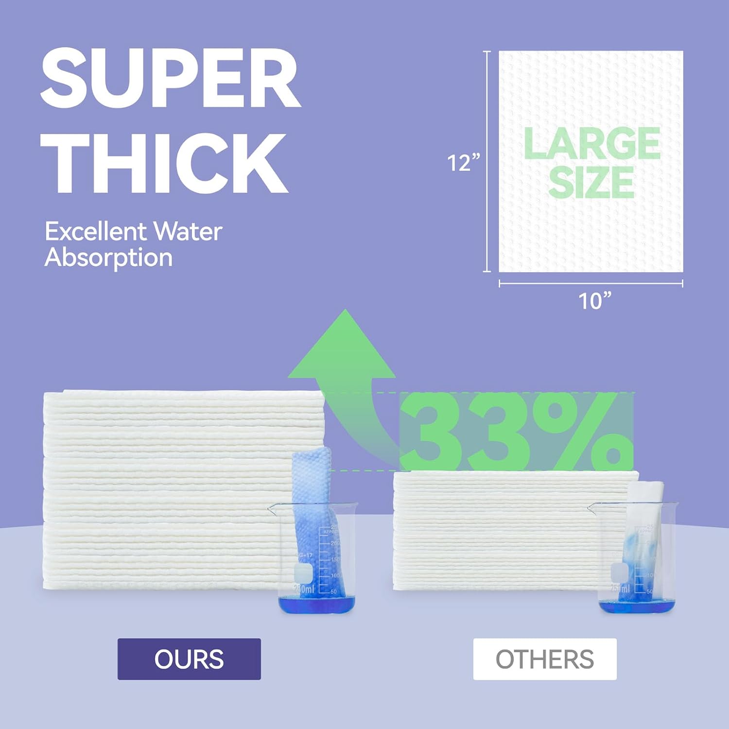 Големина од 10 инчи x 12 инчи мека крпа за лице е изработено од високо квалитетно 100% растително влакна, 30% подебели од другите крпи, без хемиски, без мирис, не-иритирачки, супер меки и издржливи. Пешкирот за лице има одличен ефект на чистење, погоден за сите типови кожа, особено чувствителна кожа