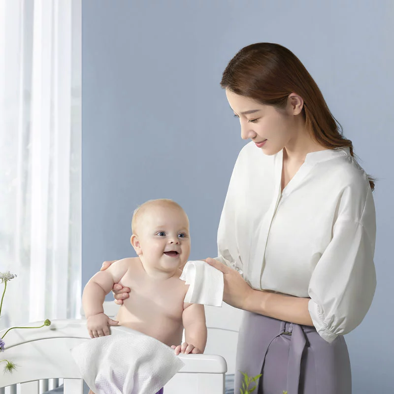 99% формула за чиста вода, по повеќекратен процес на прочистување, нежно чистење на деликатната кожа на бебето, ефикасно отстранете ја нечистотијата и бактериите, додека ја задржувате природната влага на кожата, така што кожата на бебето е секогаш навлажнета и удобна.